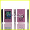 Hot SpotHKI4G2011 new hello kitty mini g4 kids chirdren mobile phonedual band, Unlocked, works WorldwideAnalog TV Play MP3Language :English/ French/ Spanish/Portugues/German/Polish/Persian/ItalianFeaturesLCD2.0" LCD screen 240*320Support Extend Card4GInternal Memory59kPhone book350 group contactsCamera1.3 Mega pixel camera with LED Flash,hkrofen.com test put out biggest size is 640*480RingPolyphonic/MP3PlayerMP3 & MP4 playerRingtones TypePolyphonic/MP3Audio File FormatMP3/WAV/AMR/AWBVideo File Format3GP/MPEG4 (AVI)Image File FormatJPEG/BMP/GIFE-book FormatTXTFM RadioYes87.5 – 108.0 mHzMessageSMS/MMSCallingcaller Ring ToneOther functionscalendar,To do list,Alarm,World Clock,StopwatchSpecificationsNetworkGSM850/900/1800/1900mHzBatteryLithium Batteries 760 mAhColorPink/white/blackDimension(L*W*H)90*51*12mmStandby timeAbout 300-400HoursTalking timeAbout3-4HoursPackage Contents:1 X cell phone2x Rechargeable Li-ion battery1 x Stereo Headset with built-in MIC and clip1 x Charger1 x USB Cable Line1 x User Manualin English